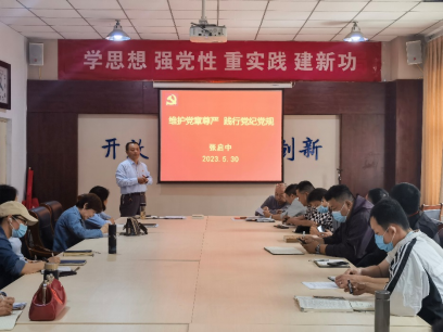 课堂上,张启中重点强调,“明方向、立规矩、正风气、强免疫”是广大党员干部必须遵守的行为准则,也是坚定不移走群众路线的基本要求。党员干部要把学习党内法规制度作为党性锤炼的“必修课”,要心中有敬畏,自觉遵守党章,自觉维护、运用党内法规,把党要管党、从严治党落到实处,坚持把思想摆进去、把工作摆进去,思考深入、剖析深刻,进一步加深对党的创新理论的理解、领会和把握,从而推动工作的政治自觉和行动自觉。党课结束后,由张启中领誓,全体党员重温入党誓词,通过再现入党时的情境,点燃大家为共产主义事业奋斗的激情。