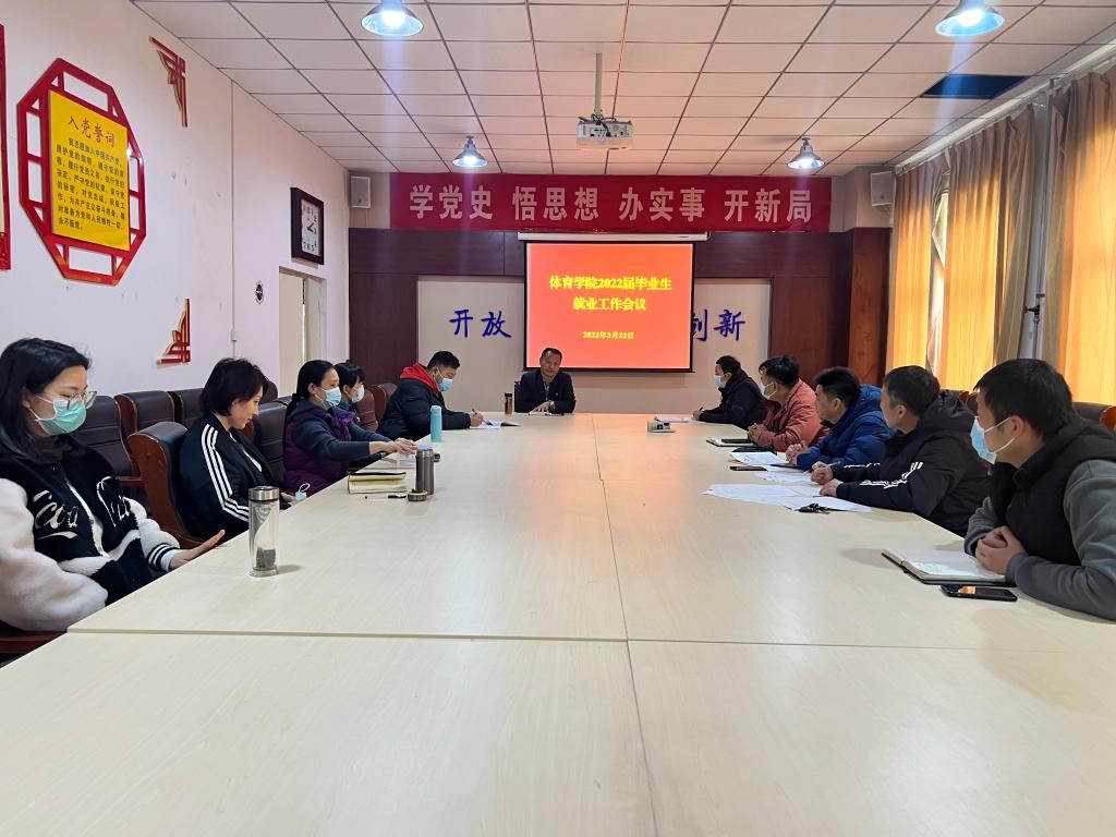 Beat365官网于3月22日下午召开了体育教育专业2022届毕业生就业工作会议,学院全体领导、毕业班辅导员和Beat365官网2018级全体创新引飞导师参加了此次会议,对在金穗校区外居住的专职教师通过视频会议的方式进行。