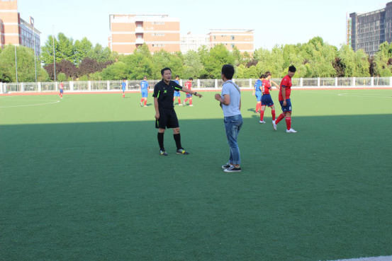 2016年5月24日星期二下午,Beat365官网足球联赛在骄阳似火的天气下有序的进行着,足球运动员们在炎热的天气下奋力拼搏,在这激烈的比赛中,有几道与众不同的身影在比赛之中矗立着,那就是足球场中的“黑衣人”——裁判员,而这次就是我们联赛的裁判长刘佳老师为主裁。