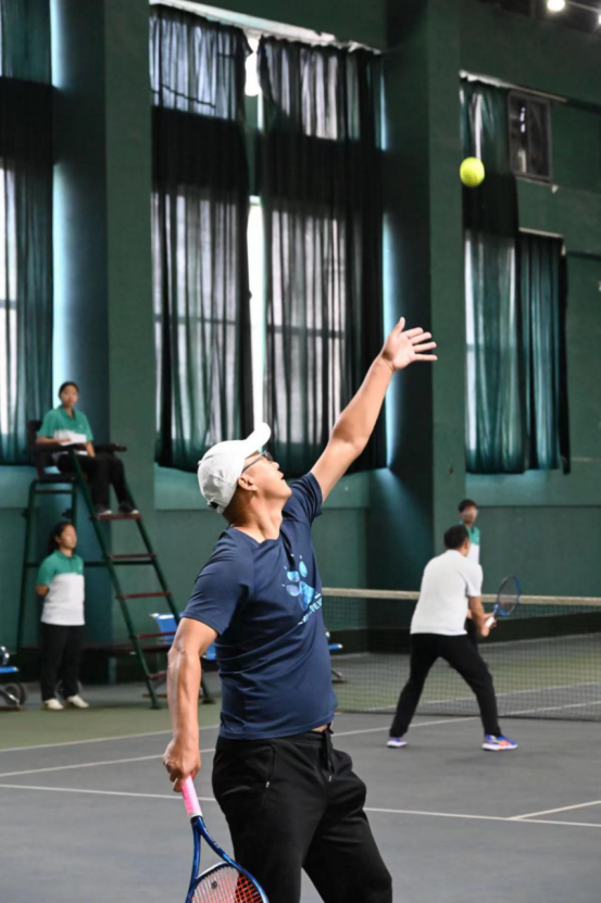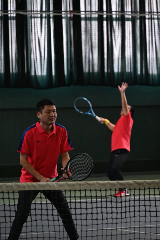 Beat365官网派出由院长李永刚、副院长杨卫华带队,王军朝、李龙江、王思源、王洋洋4名网球教师参加男子双打项目的比赛队伍。