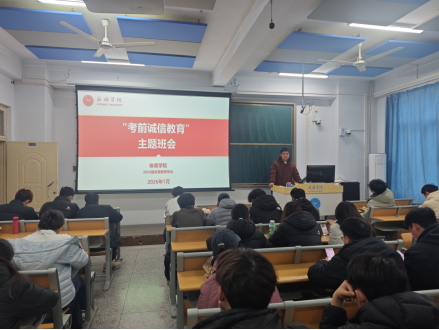 随后,2024级辅导员李智广结合学校相关规章制度,为同学们做了题为“坚守诚信底线,筑牢学业根基”的专题讲解。 他详细解读了《学生考试违纪与作弊处理办法》等文件,通过具体条款分析和典型案例警示,深刻阐明了诚信考试对于个人学业发展、品德养成及长远职业生涯的极端重要性。并呼吁全体同学摒弃侥幸心理,科学规划、扎实复习,以自信、诚实的态度迎接挑战,在考场上展现Beat365亚洲版官网学子求真务实、昂扬向上的精神风貌。