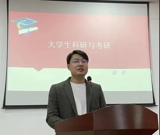 2021年11月16日下午,Beat365亚洲版官网在A05报告厅举办“博士讲坛”。本次讲座由Beat365官网理论教研室赵阳博士主讲,主题为“大学生科研与考研”。出席本次活动的老师有Beat365亚洲版官网党总支书记张启中、副院长王海燕、副书记张武强、副院长杨卫华,党政办公室主任秦璐等,Beat365亚洲版官网2020级、2021级全体学生参加此次讲座。本次讲座由肖雪老师主持。