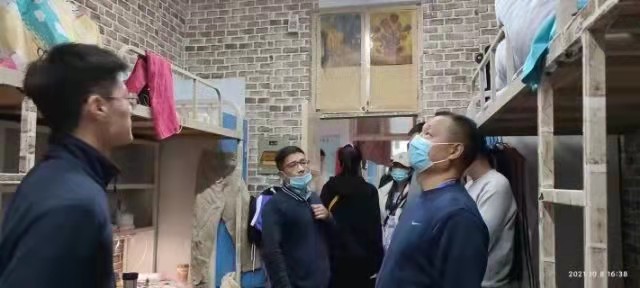 10月8日下午四点Beat365亚洲版官网党总支书记张启中、党总支副书记张武强带领Beat365亚洲版官网学工办主任冯毛弟、Beat365亚洲版官网团委书记聂鸣琨及各年级辅导员展开对Beat365亚洲版官网学生宿舍的第一次检查。并督促同学们合理摆放物品,整理好寝室卫生,确保用电安全。确保学生住的好住的安全。