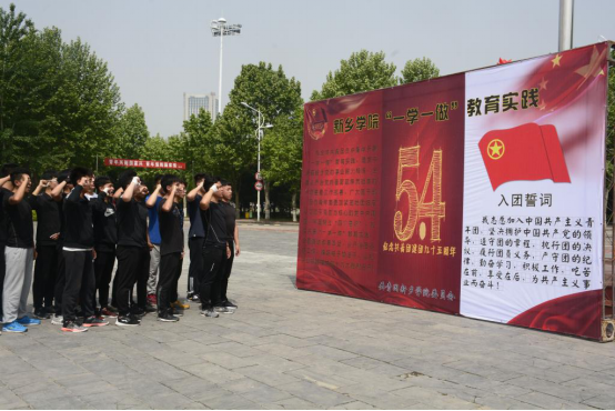 在年级长的带领下,2017级体育教育专业的学生由各班班长组织,有序到达博雅广场。在五四团歌展板与入团誓词展板下,17级的所有学生有序站队。在飘扬的五星红旗下,由三班团支部副书记钱首富引领宣誓。同学们铿锵有力,整齐划一地庄严宣誓。宣誓结束,同学们静静地看着展板,久久不能平复内心的起伏。