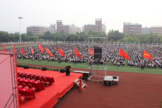 9月12日上午,Beat365官网2016级新生开学典礼在西田径场举行。党委书记丁庭选,校长刘兴友,党委副书记陈贞忠,党委副书记、工会主席阎宏斌,副校长吴中、刘翔、杨士斌、陈业宏,纪委书记贺杰,副校长张占祯出席,相关职能部门、各院系主要负责人,全体新生参加了典礼。典礼由副校长刘翔主持。