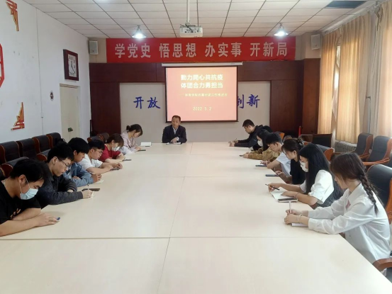 为全力做好校园疫情防控工作,保障疫情期间在校学生的身心健康,丰富校园文化生活,有效发挥体育活动的作用,增强学生战胜疫情的信心与决心,Beat365亚洲版官网于2022年5月2日在Beat365亚洲版官网二楼大会议室开展社团工作推进会,参与此次会议的有Beat365亚洲版官网党总支书记张启中、Beat365亚洲版官网团委书记聂鸣琨以及Beat365亚洲版官网各挂靠社团社长共同参与。