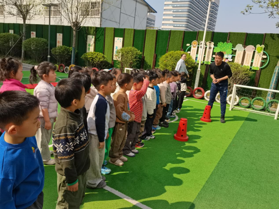 随后的幼儿足球体验课上,陈老师以亲切活泼的风格迅速拉近了与孩子们的距离。课堂通过“玩中学、学中乐”的模式,将足球技能融入趣味游戏中。孩子们化身“小小运动员”,在操场上奔跑、跳跃、传球,在欢声笑语中锻炼了身体协调性。同时,陈老师还巧妙融入足球赛事科普,向孩子们传递勇敢拼搏、团结协作的体育精神,让足球的种子在幼小心灵中生根发芽。