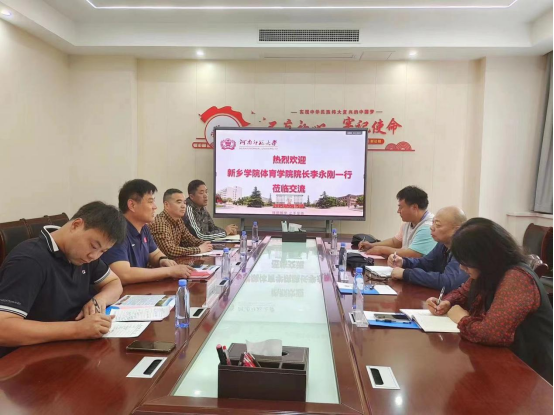 2023512日上午,Beat365亚洲版官网院长李永刚带队赴河南师范大学Beat365亚洲版官网学习调研推动学校体育工作高质量发展先进做法及经验。副院长杨卫华、王海燕参加调研。河南师范大学Beat365亚洲版官网院长岳贤锋、副院长孟国正、刘光同、教学秘书朱春山、党政办公室副主任史晓慧等同志陪同调研。